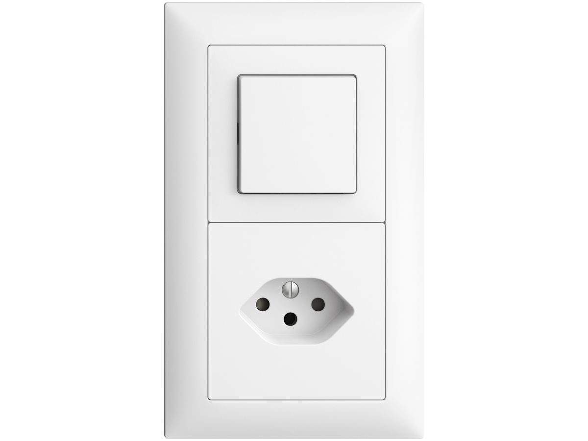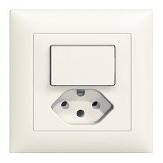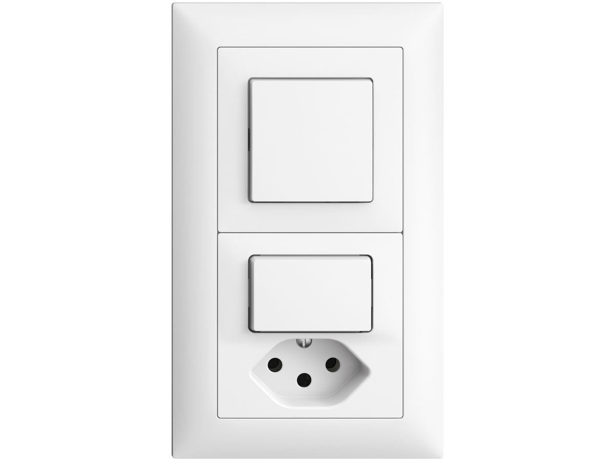 Eine Kleinkombination. Diese besteht aus einem Schalter / Taster und einer Steckdose in der normalen grösse eines einzelnen Elements. |
